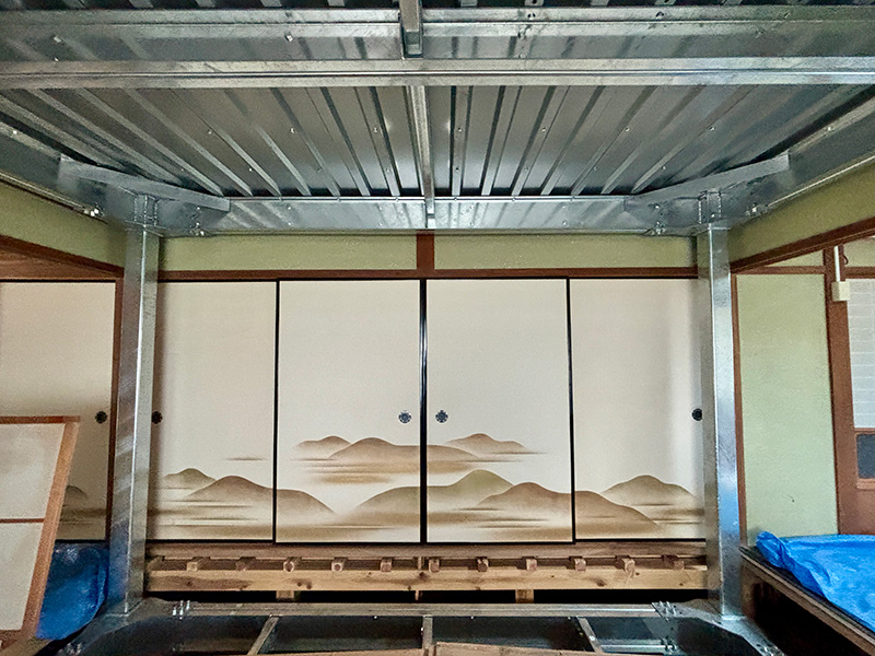 寝室やリビングなどを鉄骨構造で強固な避難部屋に造り変えることができます。