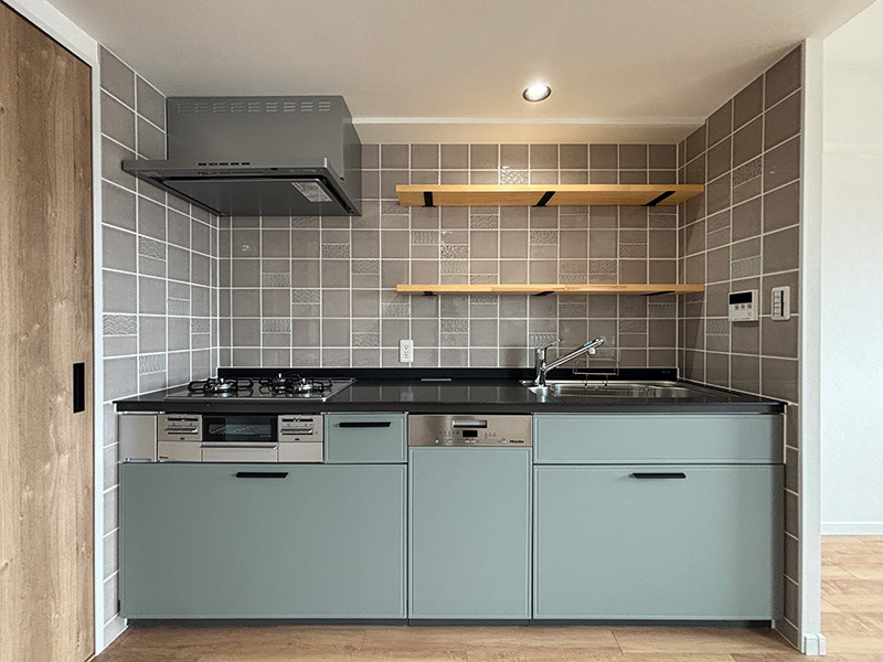 天然木のぬくもりと素材感のある無垢扉のキッチン