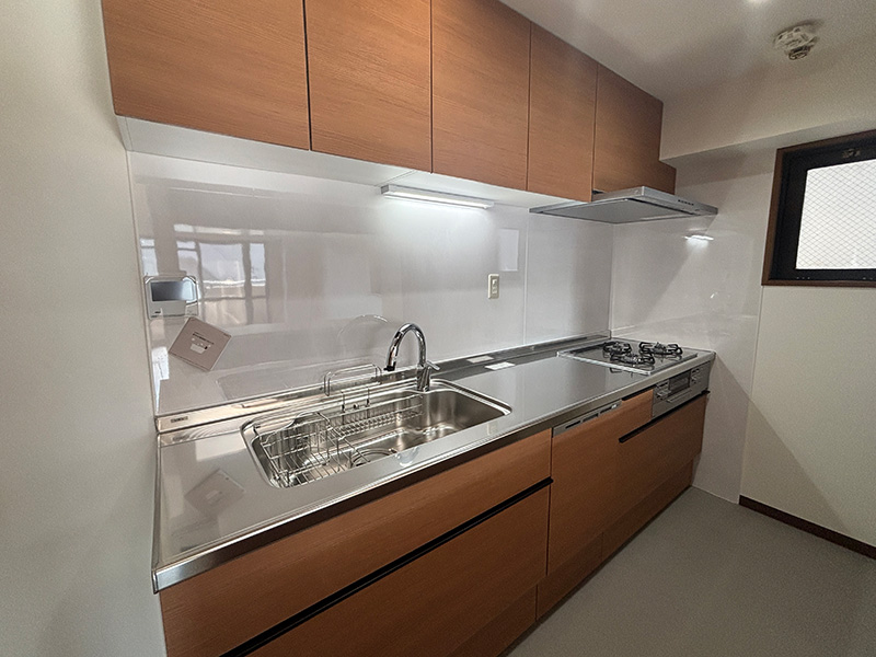 ワークトップはシャープな質感のステンレスヘアライン